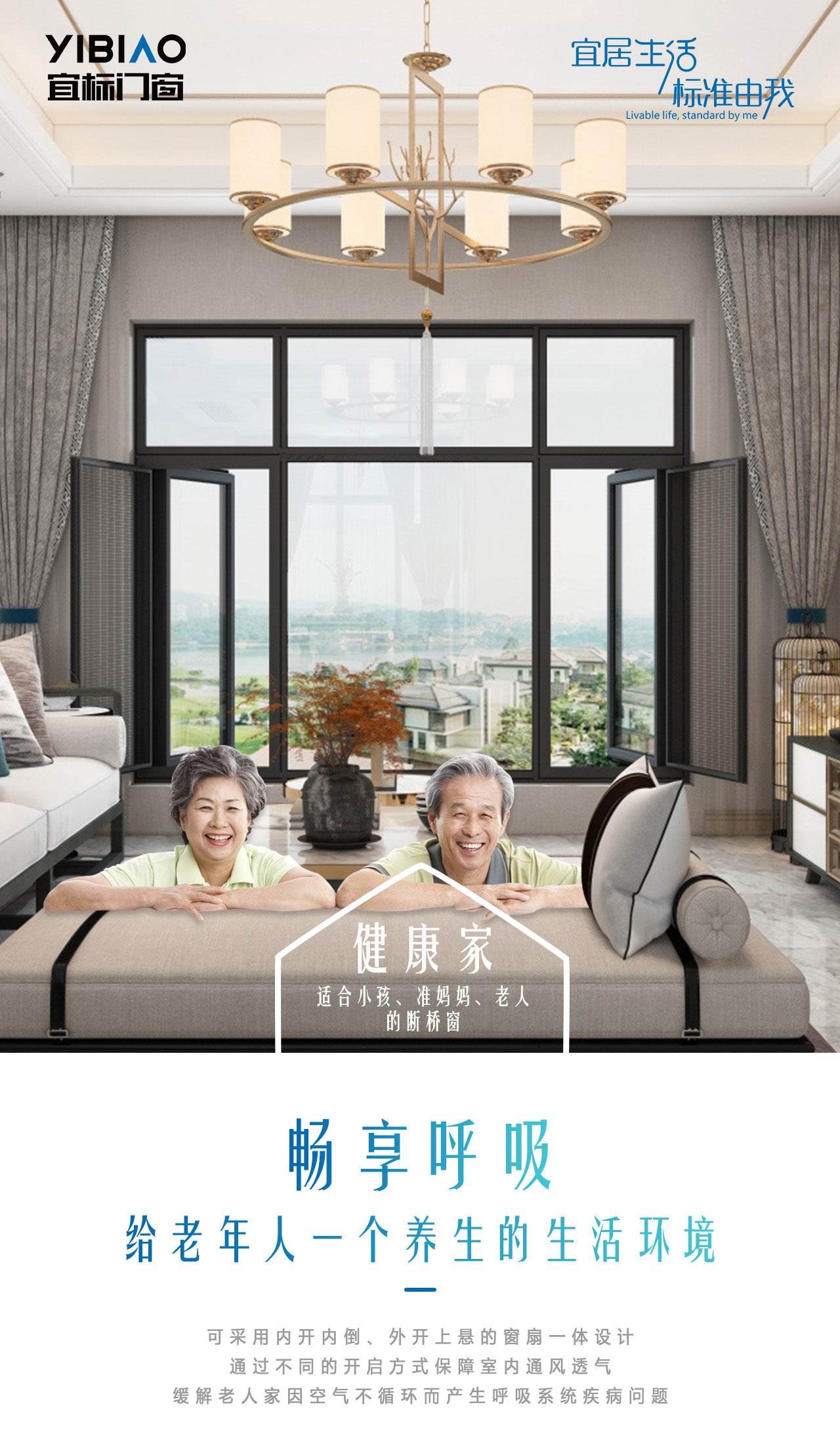 可采用內開內倒、外開上懸的窗扇一體設計,通過不同的開啟方式保障室內通風透氣,緩解老人家因空氣不循環而產生呼吸系統疾病問題。