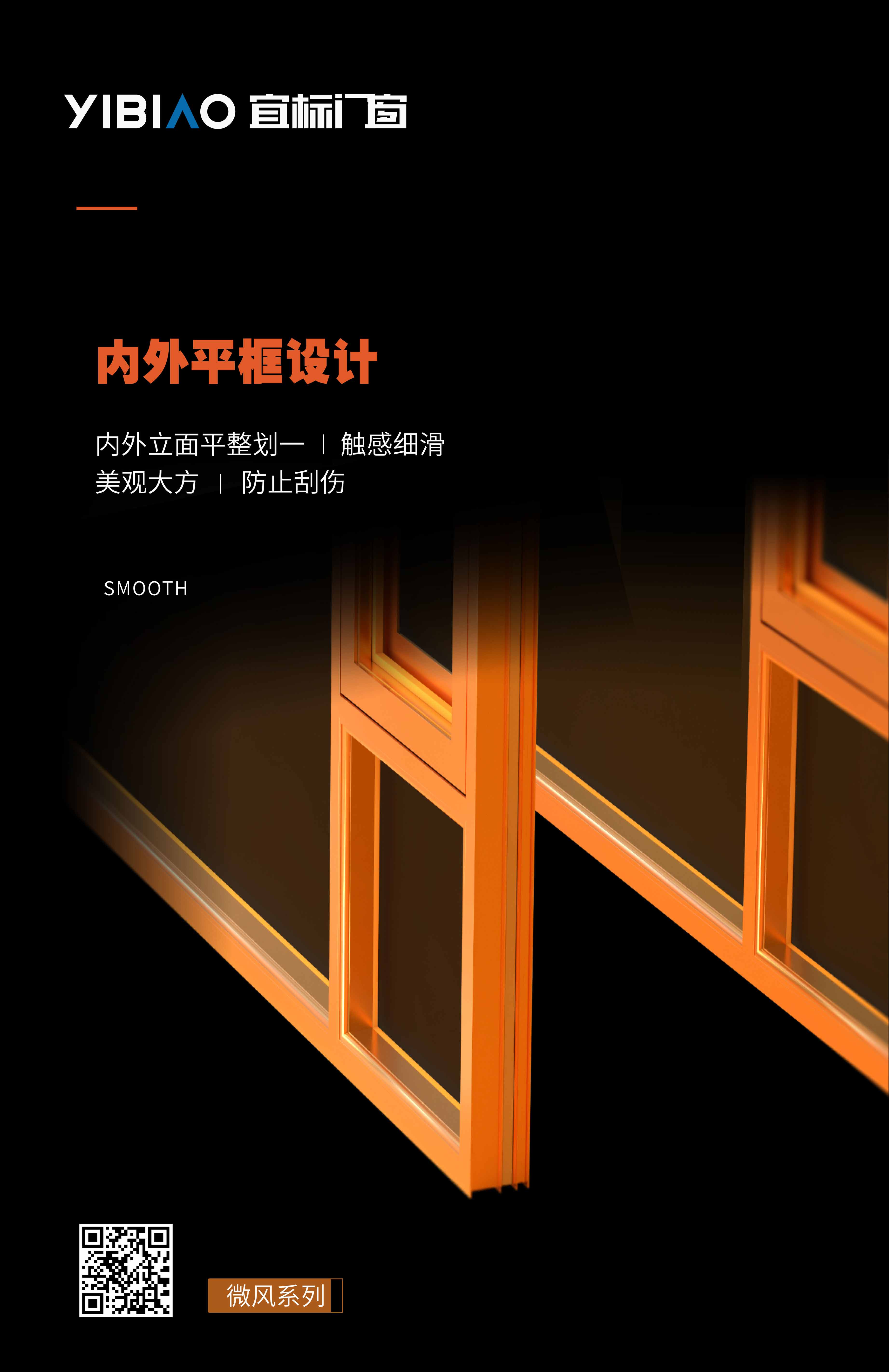 宜標《微風系列》斷橋窗,在滿足門窗功能使用的情況下,對門窗的外在進行精心的設計,采用超極窄紗扇設計,再配合立體斜壓線設計,隱藏式排水的合理設計,內外皆為平框的設計,美觀大方到了極致。