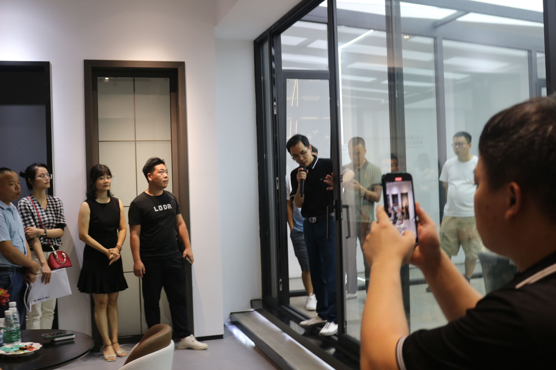產品負責人胡海倫先生上臺對宜標產品進行清晰講解。產品定位于高端整屋門窗,致力于整屋門窗一站式解決方案。我們通過自主研發的標準系統來解決人居環境問題,開啟定制研發與設計,把自然環境和人居空間互通、互補,最終達到宜居生活的標準!